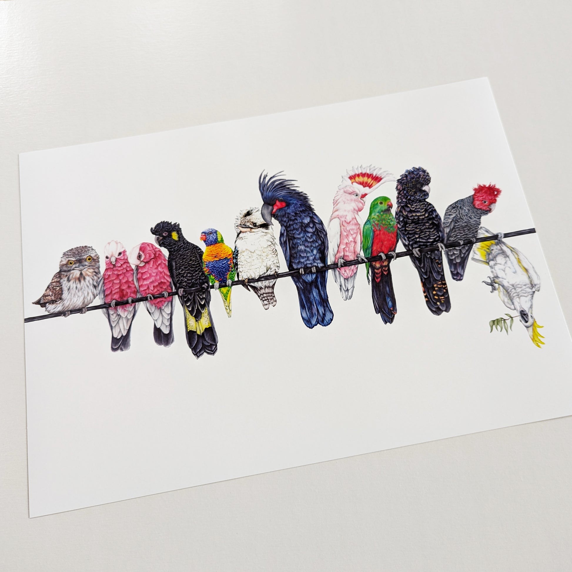 My artwork has been produced at home from an original hand drawn illustration. I use pastel pencils to drawn all my illustration onto artist board, each illustration takes me at least an hour to create!
