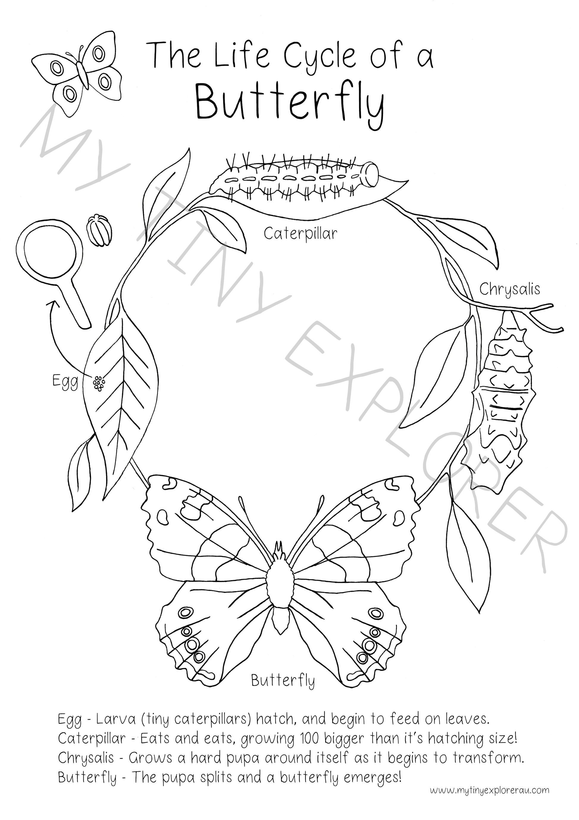 Butterfly Life Cycle Colouring In Page DIGITAL DOWNLOAD