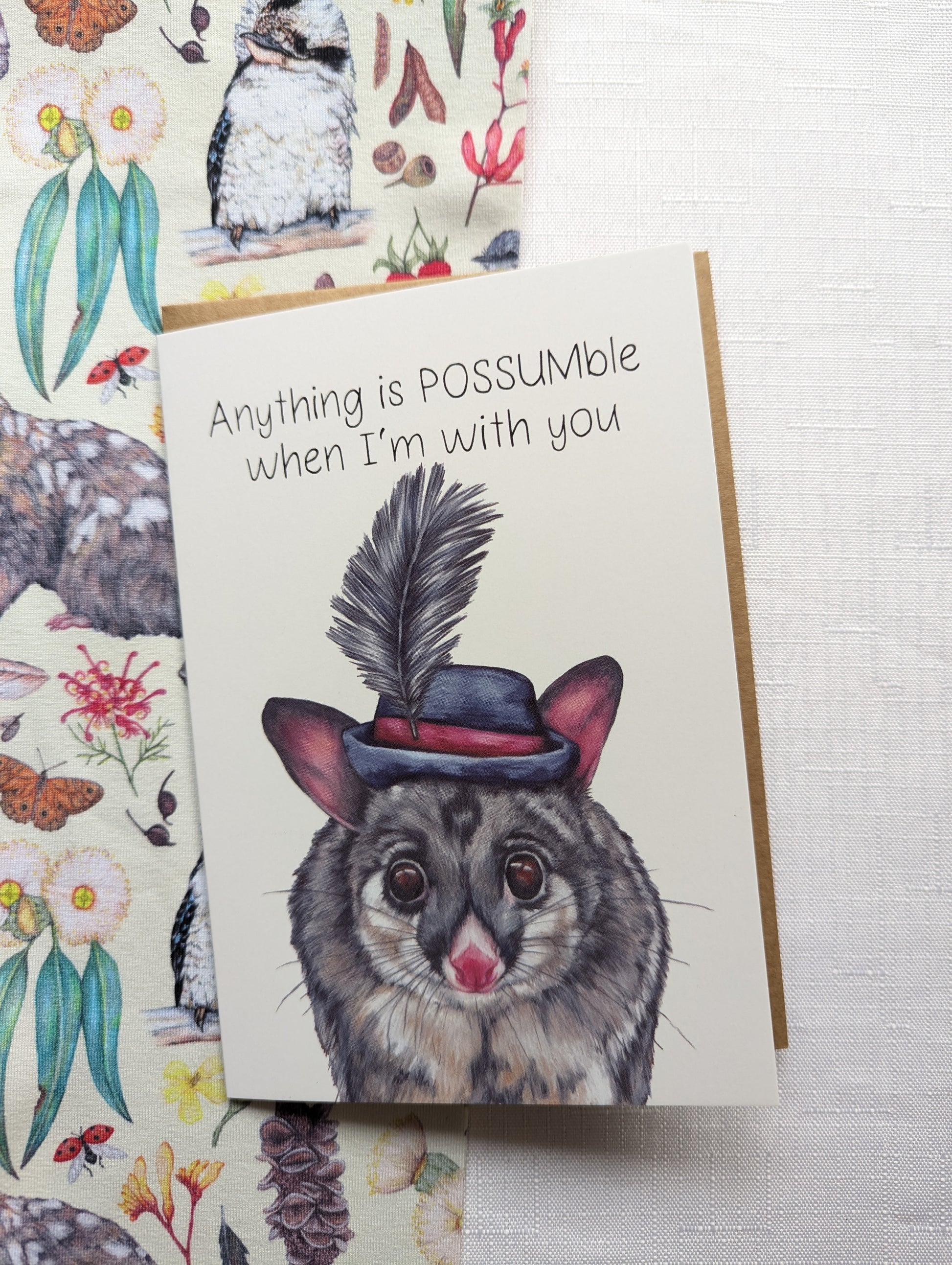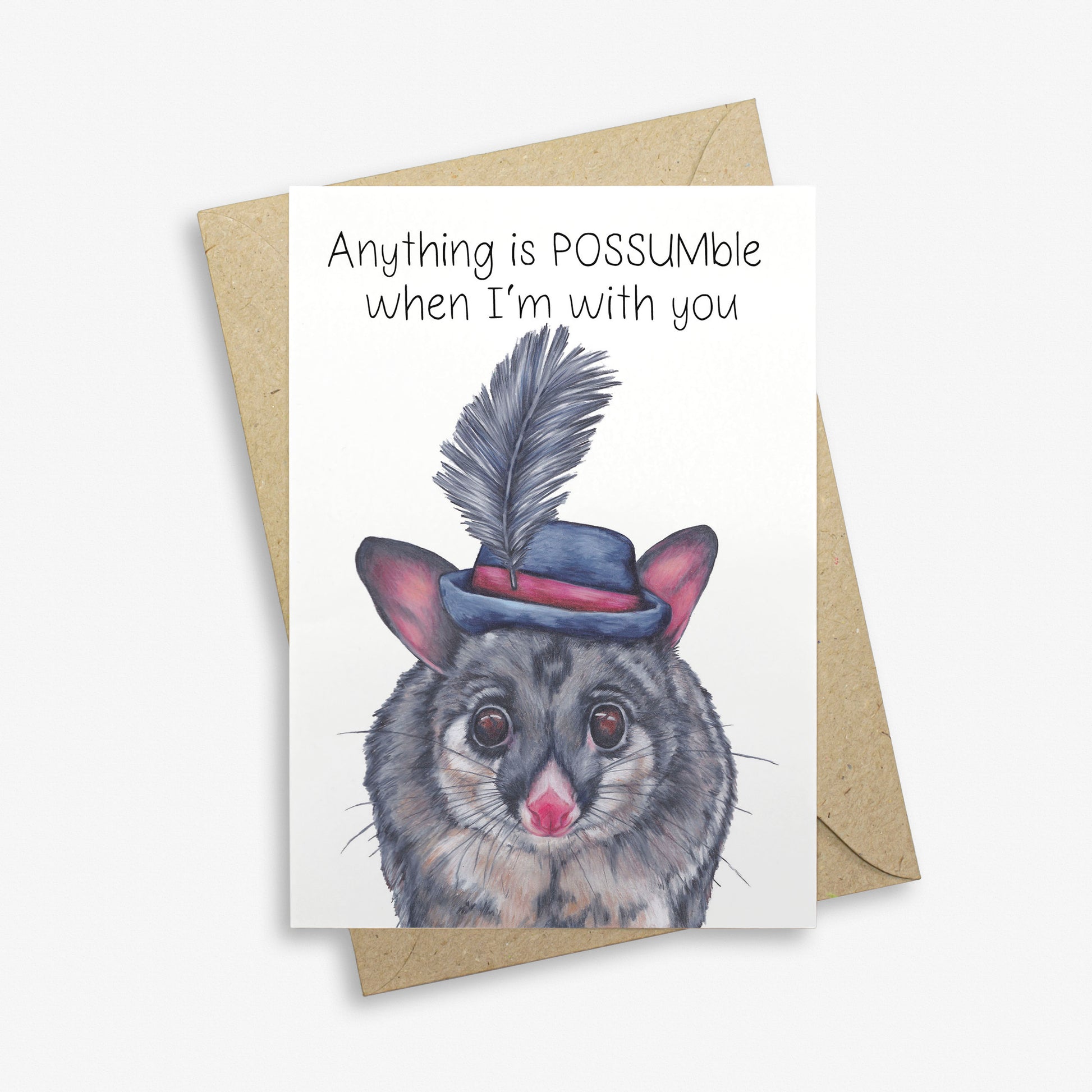 Anything is possumble when I'm with you! A unique Aussie themed greetings card with funny pun.